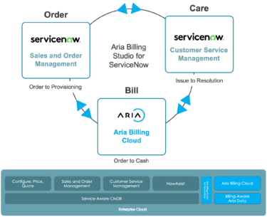 A comprehensive order-to-cash-to-care solution that enhances productivity and fuels growth using ServiceNow with Aria Billing Cloud.